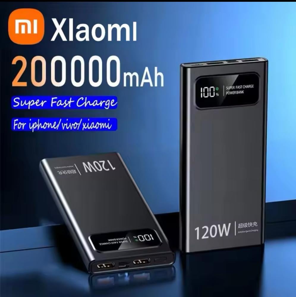 شاومي 120 واط 200000 باور بانك mAh، بطارية شحن سريعة للغاية، باور بانك بشاشة رقمية عالية السعة لهاتف iPhone Samsung Huawei